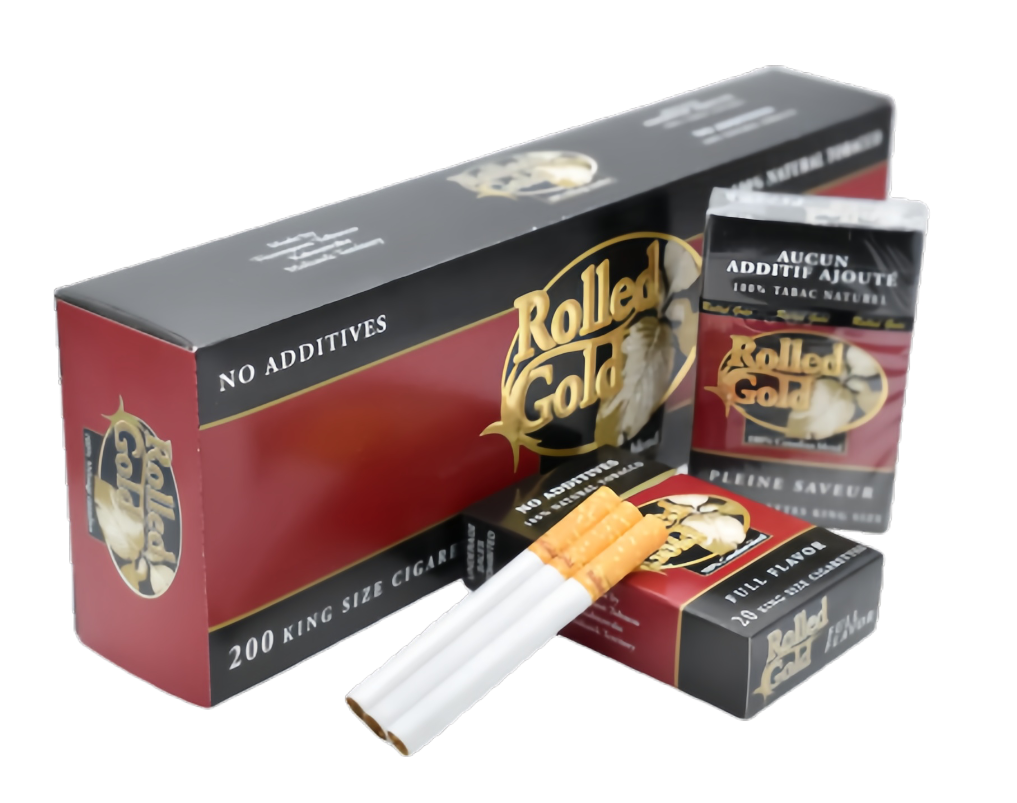 Rolled Gold Full Flavor brand is also 100 percent natural tobacco. They have a fuller-bodied taste, offering a more intense and robust smoking experience for those who prefer a stronger, deeper taste. These cigarettes are made with a denser blend of premium tobacco, which gives them their distinctive flavor and rich, satisfying smoke.
